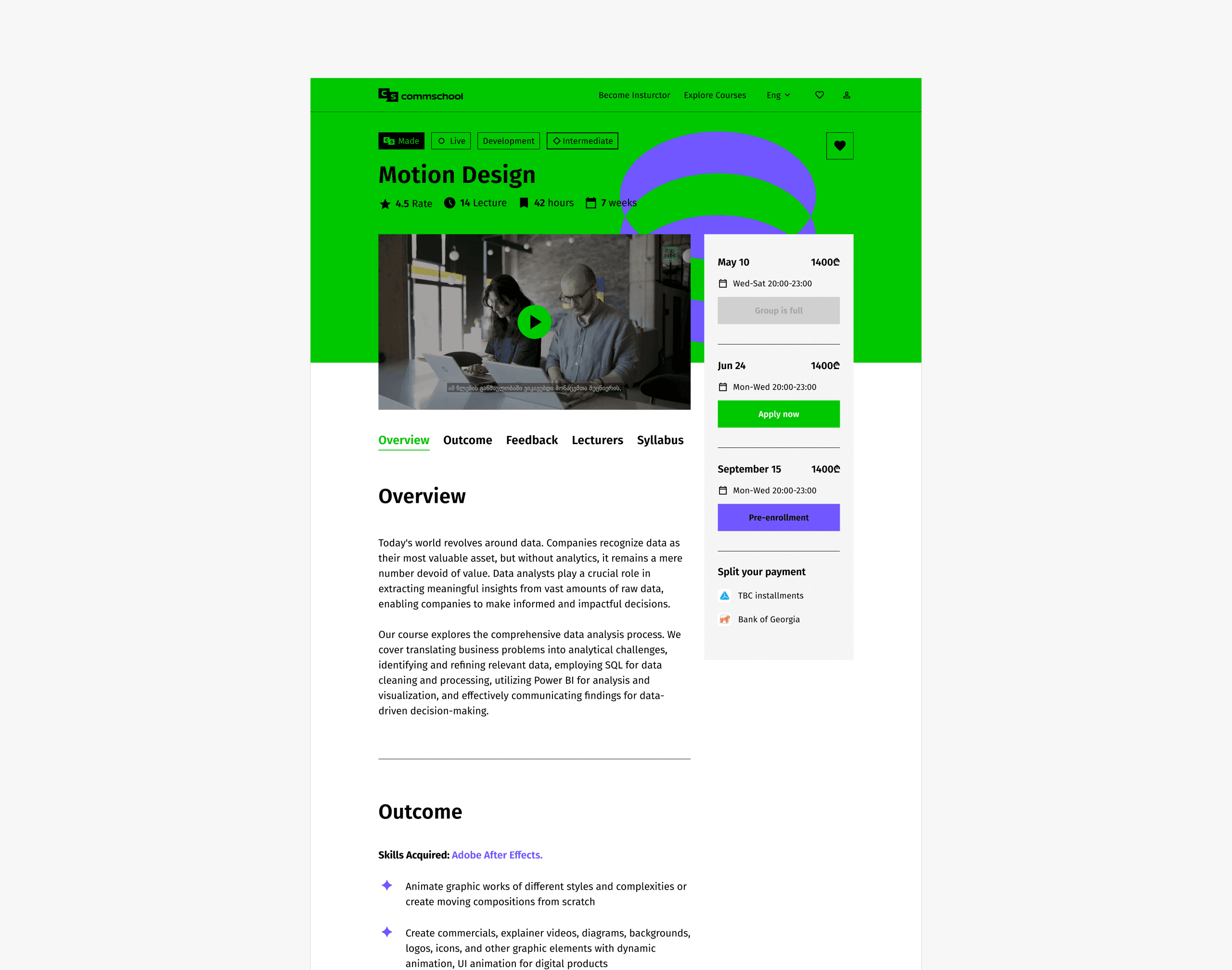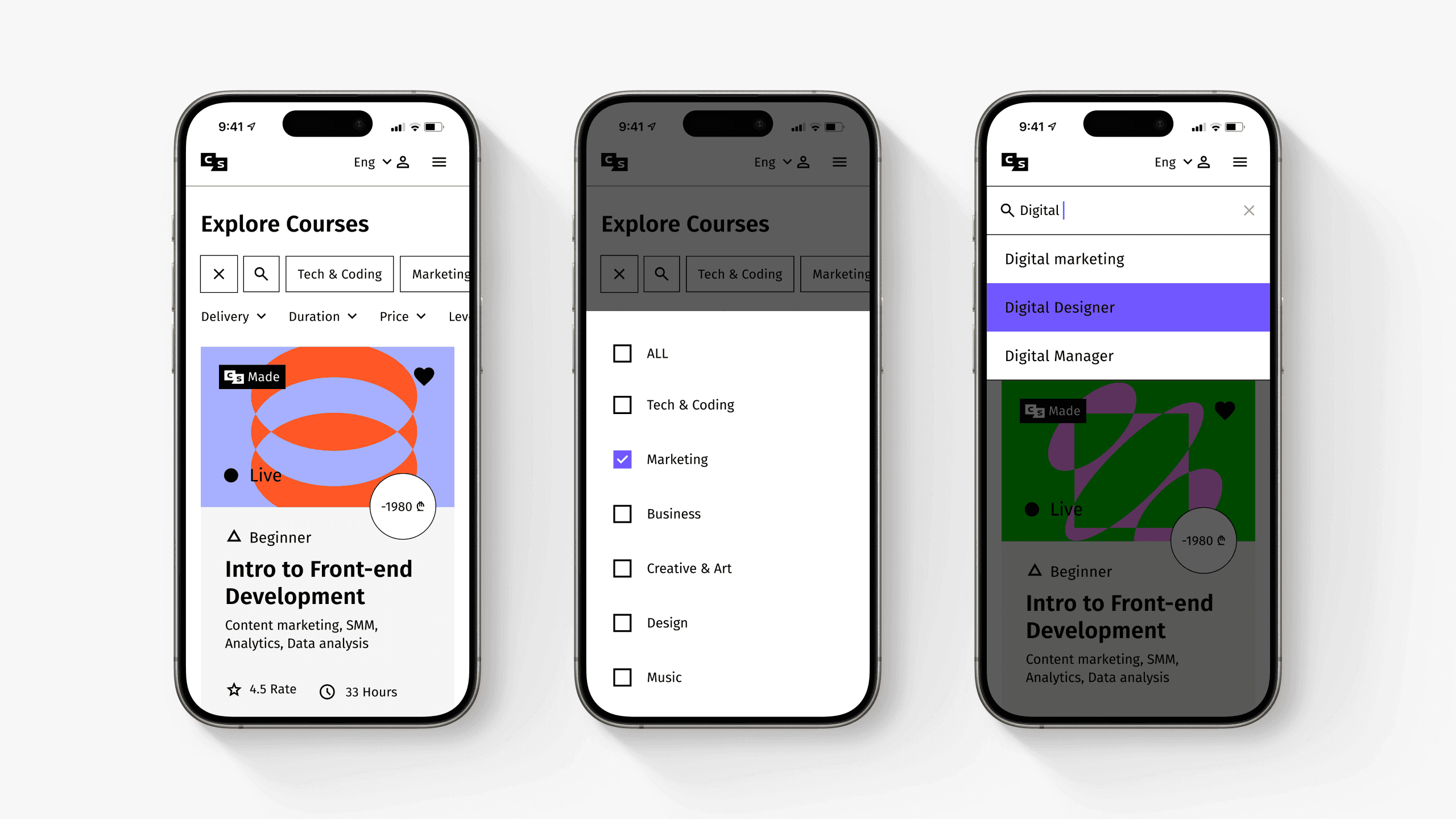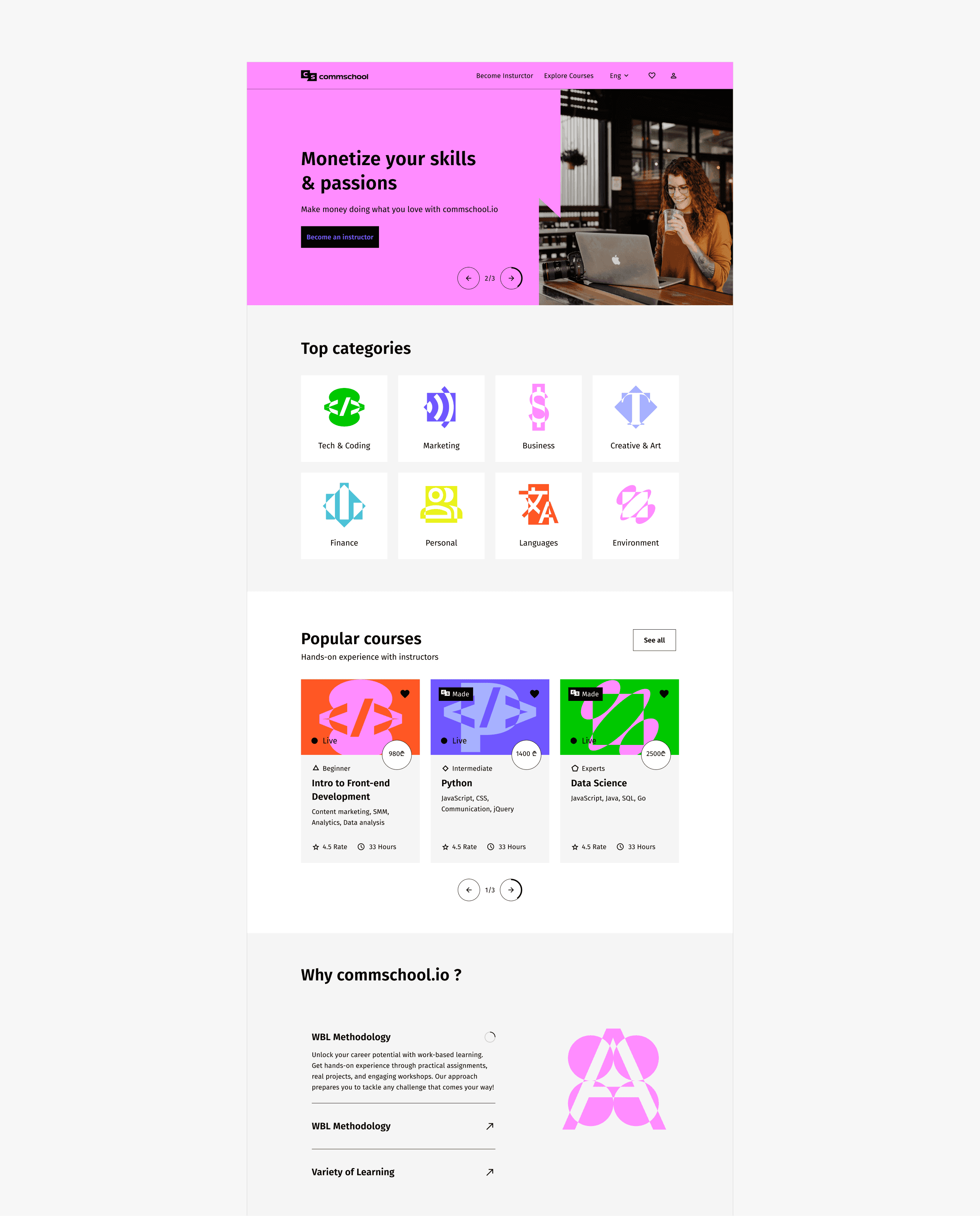 Objective: As Tbilisi School of Communications expanded its programs in marketing, design, and IT, it needed a modernized navigation system, advanced search, and filtering options to simplify course discovery. The rebranding also required a complete website redesign to enhance user experience and brand consistency.